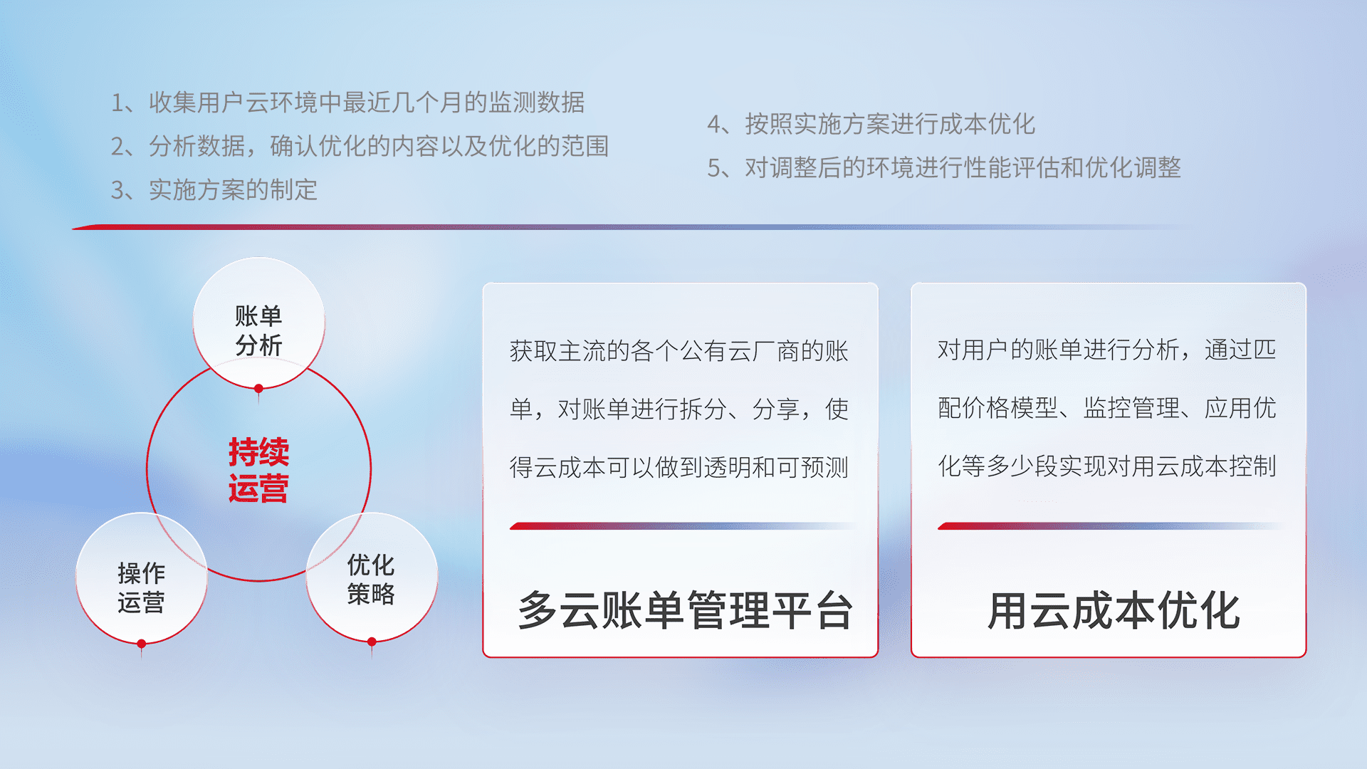 运用智能化工具分析云资源,,,,提供日常费用可视化工具,,,,自动账单拆分,,成本优化云上费用,,,,降本增效。。